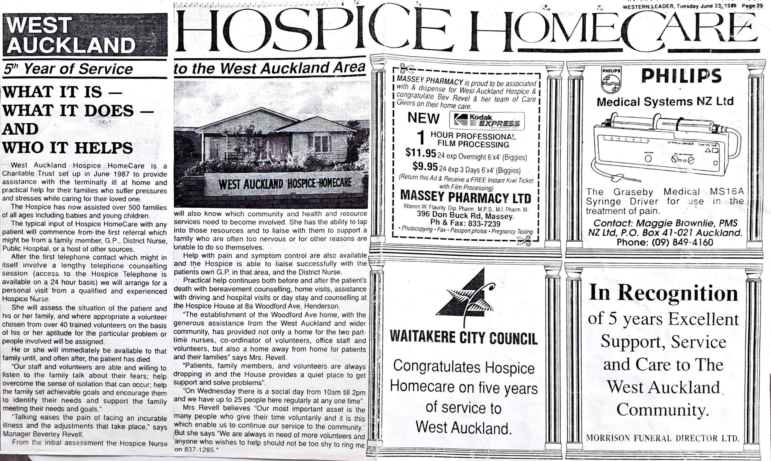 Beverley, Peter and the other Hospice West Auckland founders always envisioned the service as being rooted in community with patient-centred values. “It was never about having a hospital-like base; that’s why it was originally called ‘West Auckland Hospice HomeCare.’ People loved coming to day-stay at Hospice House in Woodford Ave, and it gave the families a break for the day… but the core vision was always supporting people at home.”