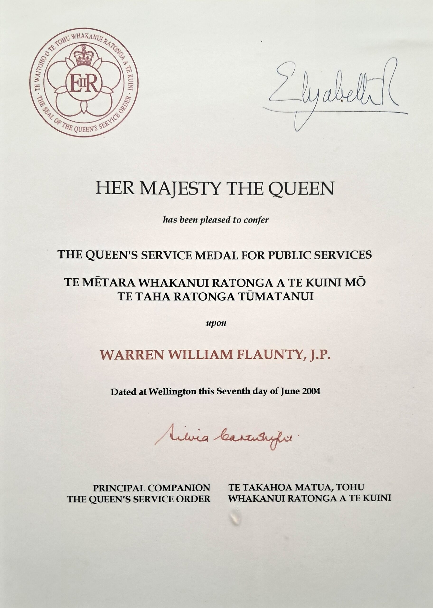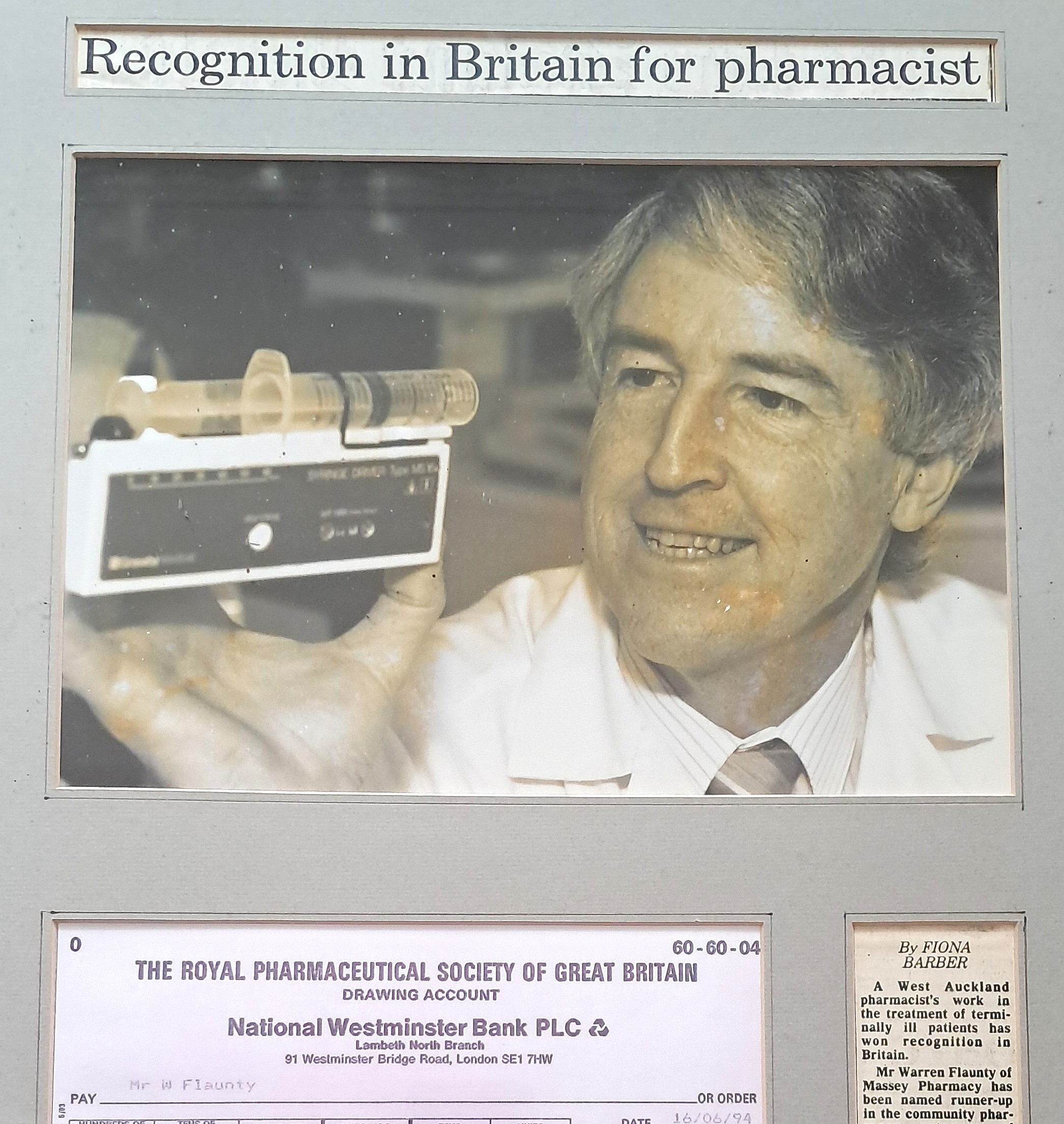 In 1994, Warren received recognition for his palliative care work from the Royal Pharmaceutical Society of Great Britain and was awarded £500 – which he donated to Hospice West Auckland. Ten years later he was awarded the Queen’s Service Medal for his contribution to public service.